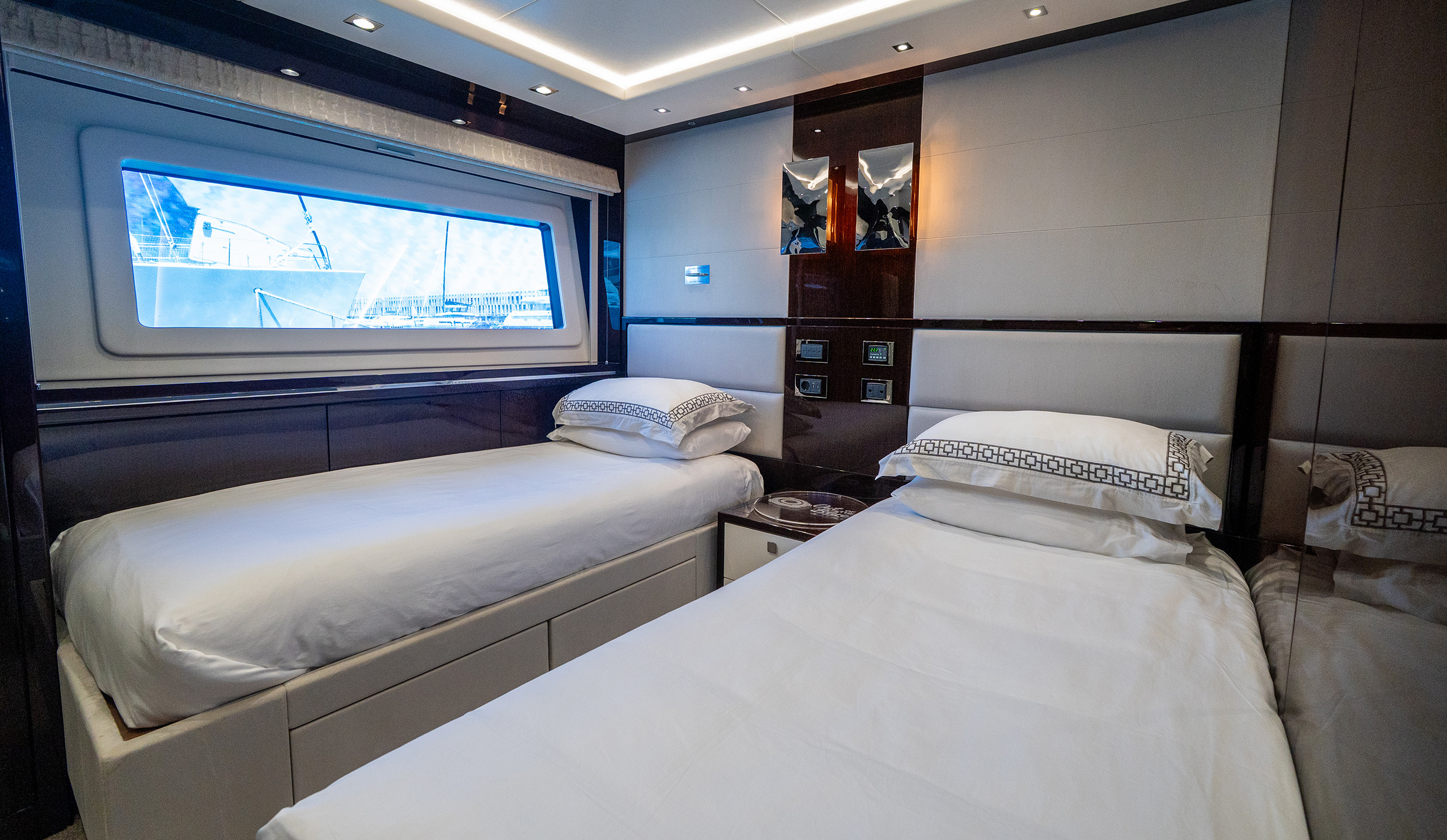 - Inboard berth moves outboard to create double berth – Ensure that bed linen is ordered for both double and single set up. Infill is supplied for double set up plus track infills to be supplied for the Port Forward Twin Guest Stateroom