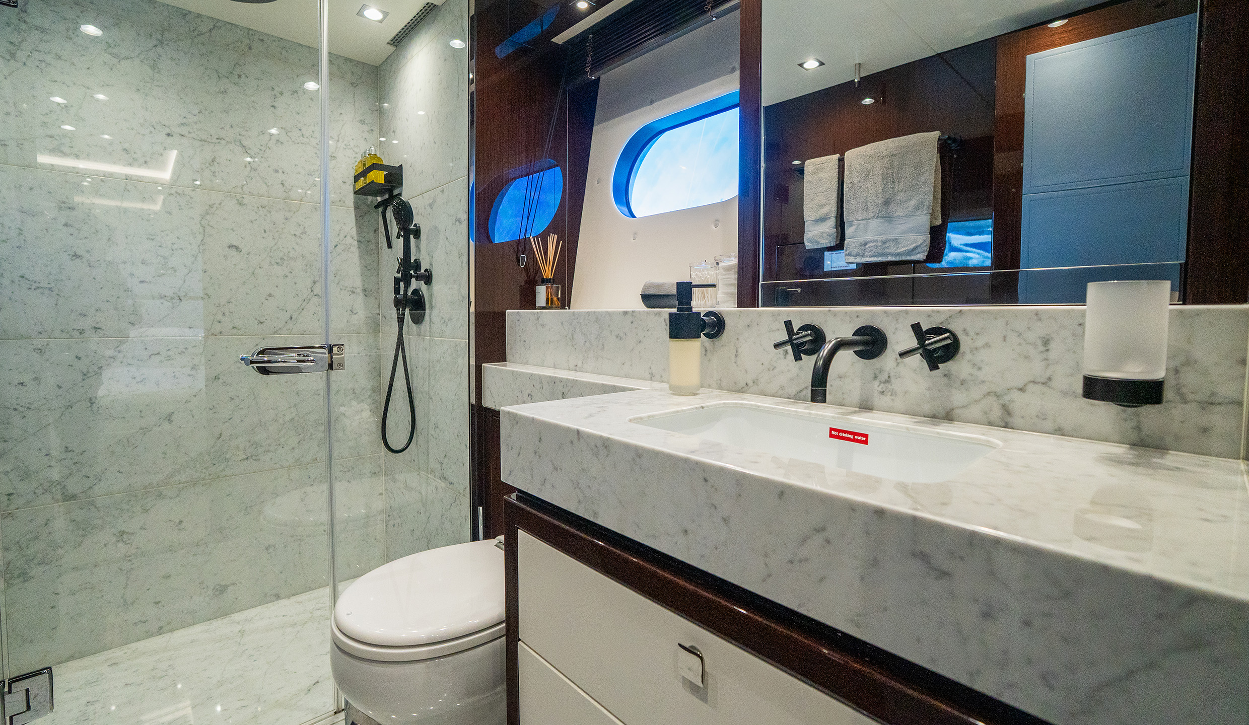 - Lower deck Guest Cabin Bathroom stone forward cabins